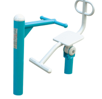 鍛煉方法:人坐在座板上,手扶扶手,腳踩踏桿,身體前傾或后仰。