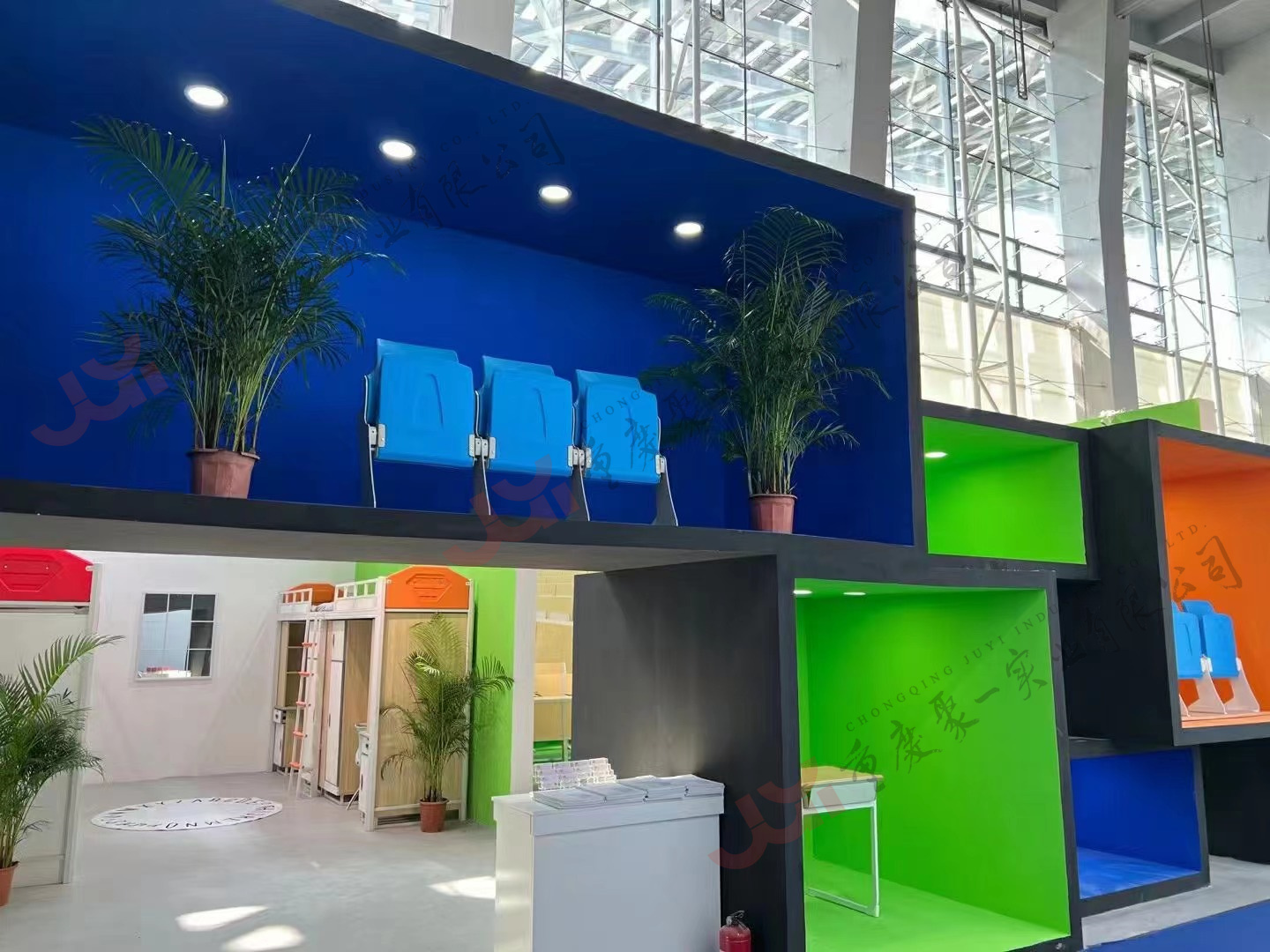 重慶聚一實業(yè)有限公司攜公司五大系列—伸縮看臺、體育場館座椅、禮堂椅、學生課桌椅和公寓床的全新產(chǎn)品亮相本屆中國(廣州)國際家具博覽會。用新穎的款式搭配活潑悅動的色彩,吸引眾多觀展客戶和同行的觀展體驗;憑精細的做工和可靠的品質(zhì),獲得觀展客戶、同行,乃至主辦單位的一致好評!