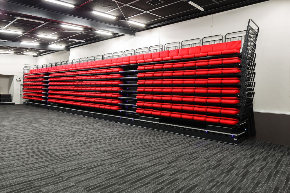 本公司生產(chǎn)的JY-7系列伸縮看臺(tái)結(jié)構(gòu)設(shè)計(jì)優(yōu)異、款式美觀大方、負(fù)載能力大、安全措施可靠、定位準(zhǔn)確,具有易操作、維修方便、噪音小等特點(diǎn)。體現(xiàn)多功能性,充分利用室內(nèi)的有效面積,滿足不同使用功能情況下多座位的要求。JY-7型伸縮看臺(tái)的臺(tái)架伸縮以電機(jī)為動(dòng)力,操作控制方便,功能配置靈活。