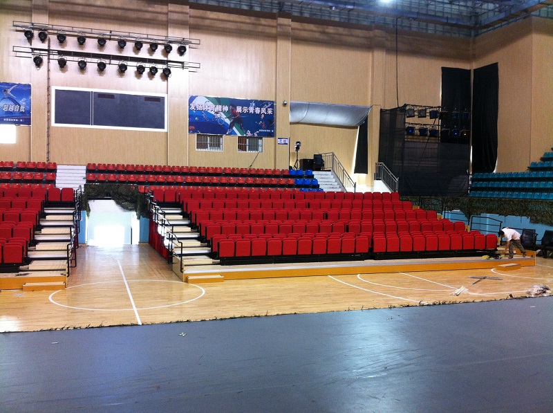 后置式可移動(dòng)伸縮看臺(tái) 活動(dòng)看臺(tái) 電動(dòng)手動(dòng)看臺(tái) 帶軟椅座位系統(tǒng) 型號(hào): JY-768