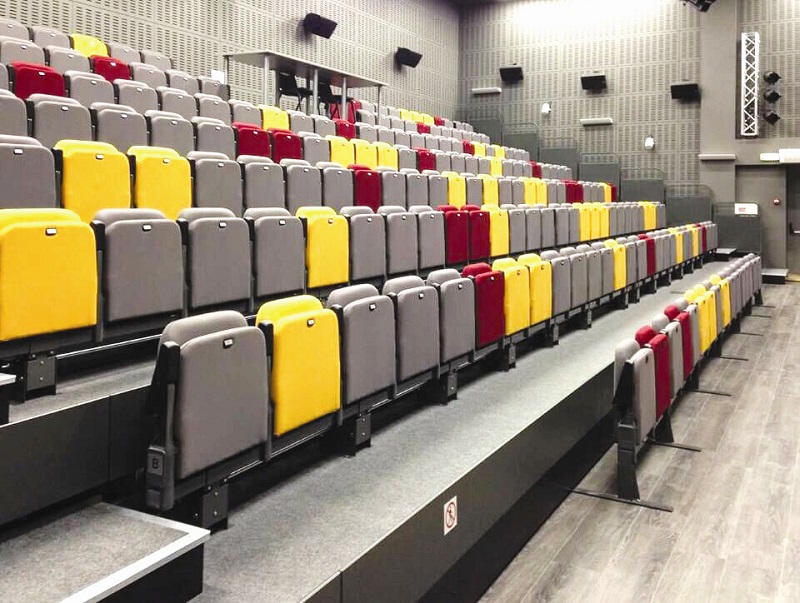 活動(dòng)看臺(tái)主要用于體育場(chǎng)館、劇場(chǎng)、會(huì)議廳等公共場(chǎng)所,通過(guò)控制活動(dòng)看臺(tái)的伸縮,可有效地實(shí)現(xiàn)場(chǎng)館、大廳多功能化,提高場(chǎng)地使用率?;顒?dòng)看臺(tái)的結(jié)構(gòu)采用收疊伸縮式結(jié)構(gòu),自動(dòng)鎖死定位,自動(dòng)解鎖,采用鏈條平行同步控制機(jī)構(gòu),座椅可手動(dòng)、腳踩或電動(dòng)控制座椅折疊。具有收藏尺寸小、結(jié)構(gòu)緊湊、操作方便、伸縮輕快、穩(wěn)定性能好、適應(yīng)性強(qiáng)等優(yōu)點(diǎn)。