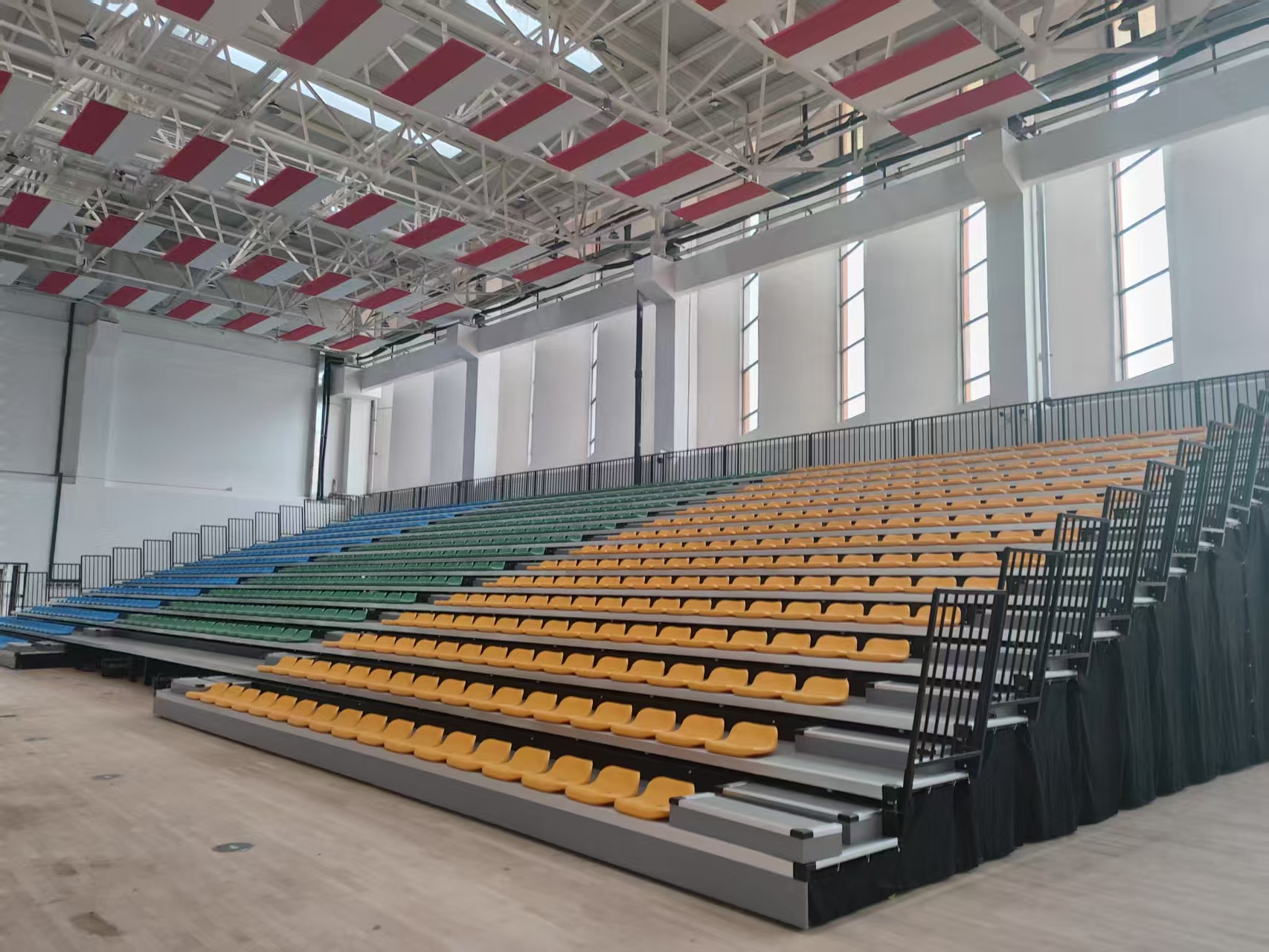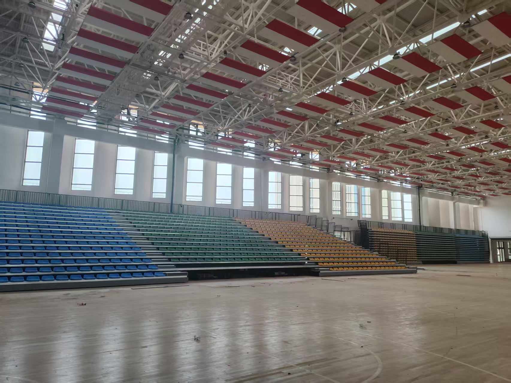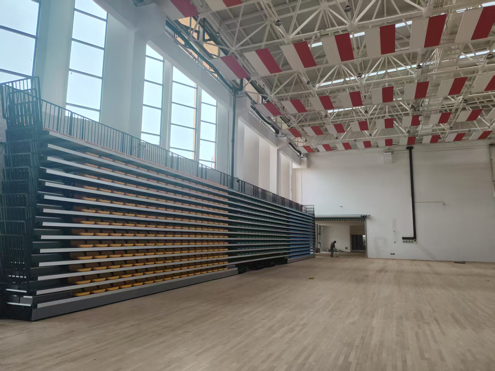 面對學(xué)校對多功能場地的使用需求,重慶聚一采用前置式座椅,搭配高強(qiáng)度金屬框架,最大程度延長伸縮看臺的使用壽命,看臺展開后可形成階梯式觀賽區(qū),有效提升場地使用效率;收縮時貼墻折疊,騰出空間用于日常體育教學(xué)或醫(yī)學(xué)急救演練。