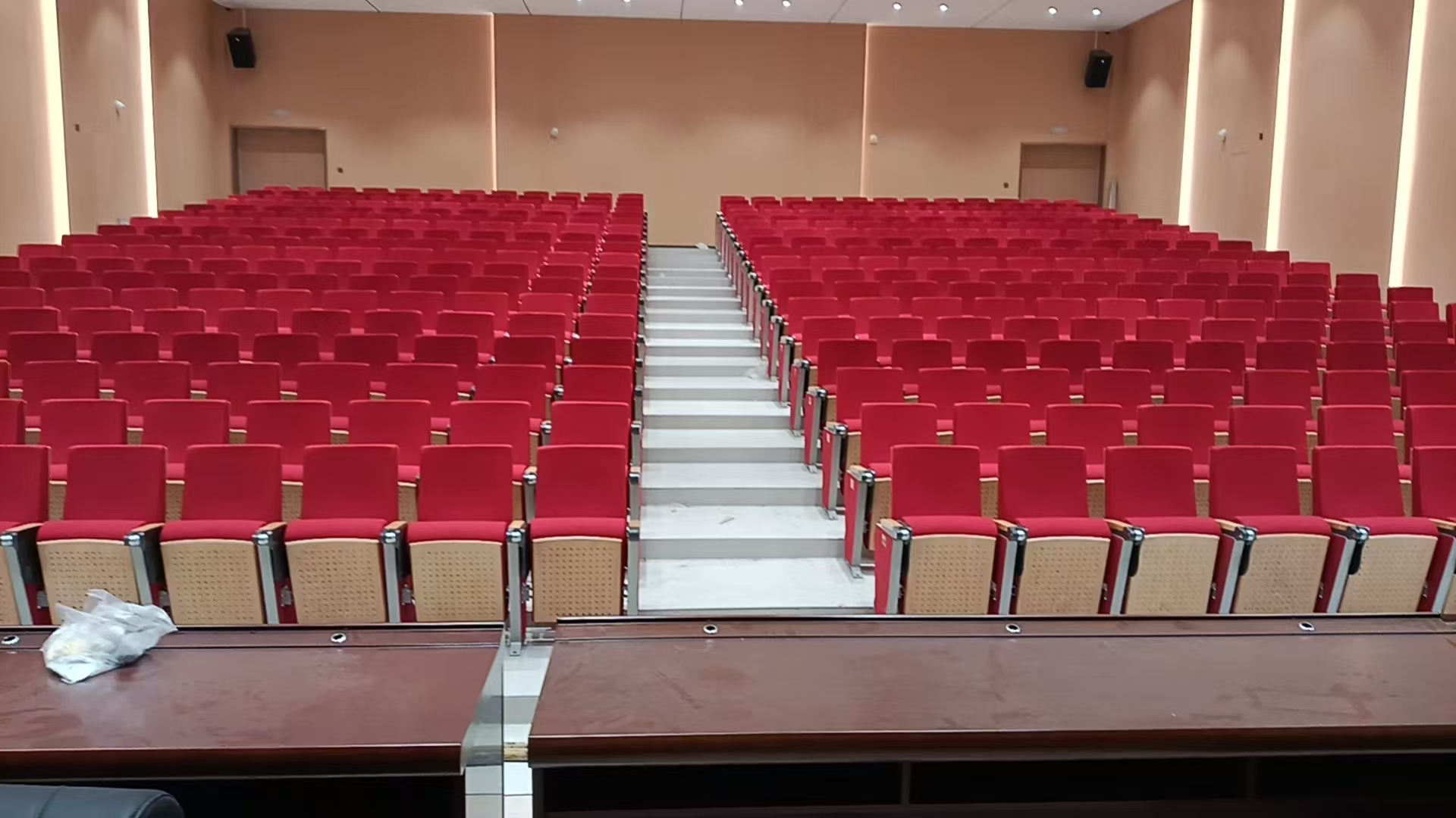 此次項目選用聚一實業(yè)明星產(chǎn)品——JY-T103禮堂椅,共計432位,精準匹配礦業(yè)集團禮堂的空間布局與使用需求。在外觀設計上,座椅采用經(jīng)典紅色面料配色,不僅視覺上莊重大氣,更與礦業(yè)集團沉穩(wěn)、昂揚的企業(yè)氣質(zhì)相契合,瞬間提升禮堂整體格調(diào);細節(jié)處更藏巧思,座板特別配備吸音孔設計,有效削弱環(huán)境噪音,為各類會議、培訓、活動營造清晰、安靜的聲場環(huán)境,大幅提升參會者的聽覺體驗。